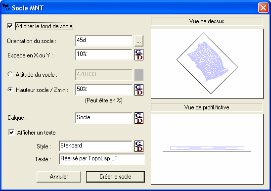 Nous continuons par le socle du terrain par le bouton « Socle