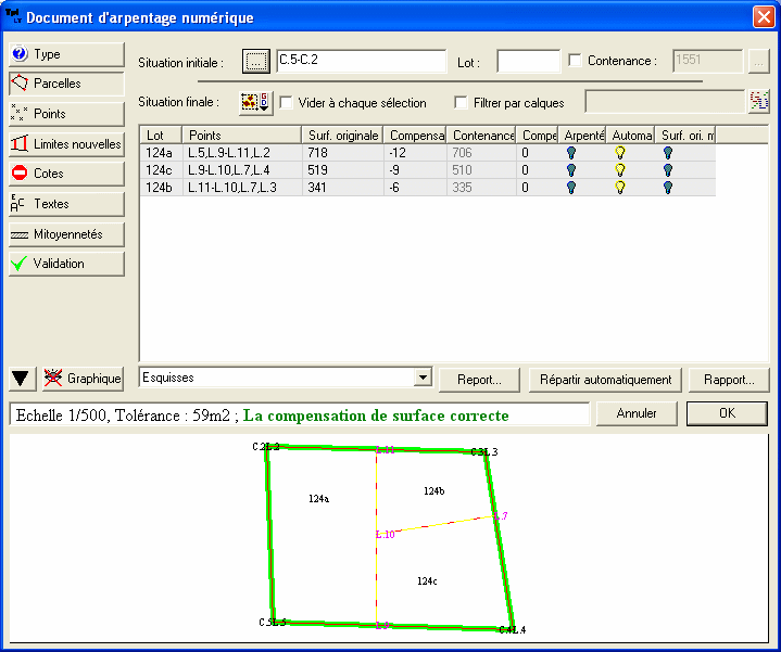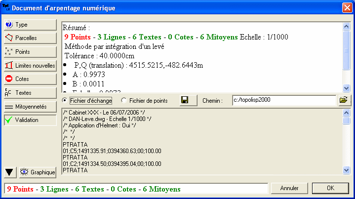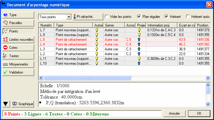 récupère les points topographiques et la contenance.
