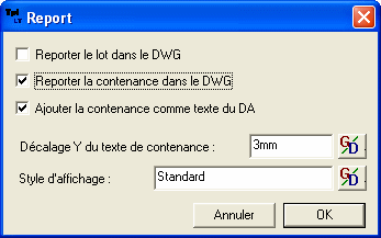 reporte la contenance à la fois dans le DWG et dans notre DA.