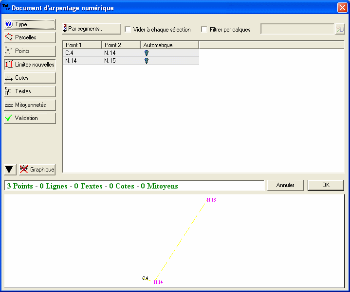 des deux limites par simple clic sur chaque segment, puis flèche