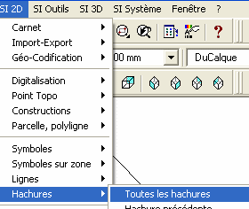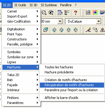 • Dans le menu SI 2D/Hachures, cliquez sur « Récupération de motifs d'hachures »