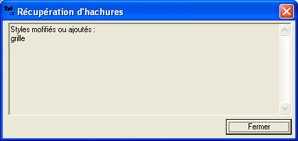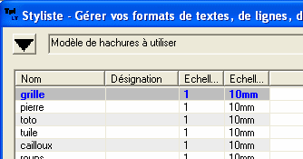 • Vous obtenez la liste des styles de hachures ajoutés, ici « grille ». La définition du « .pat » se trouve dans le styliste qui le gère pour vous.
