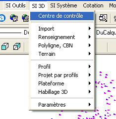 • On part d'un relevé de points topographiques en 3D. Dans le menu SI 3D, cliquez sur « Centre de contrôle »