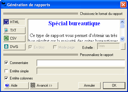 • Une fois la sélection faîtes, indiquez le format de rapport